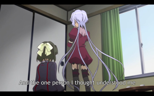 However, Kirika has little option but to interpret this as Shirabe saying, “The Kiri-chan I knew and loved is already lost beyond saving, so I might as well end you before you sink any further.”